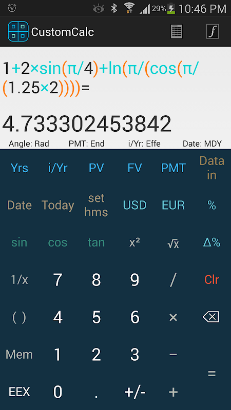 CustomCalc, volledig aanpasbare Bus / Fin / Sci / Eng / Bin / Stat Calculator
