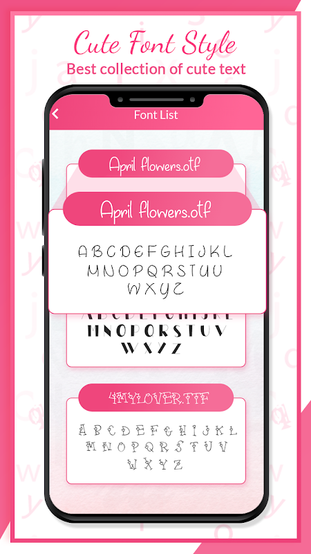 Gebruik onze slimme applicatie Cute Font Style waarmee gebruikers een of meer Letterstijl op je mobiel kunnen krijgen. Applicatie waarmee gebruikers direct een voorbeeld van lettertypen kunnen zien en vervolgens op het apparaat kunnen toepassen. Snelle instellingen om uw lettertype binnen enkele seconden direct te wijzigen. Ontvang leuke lettertypen met een grote collectie en een coole manier om de stijlvolle look te veranderen in een Android-telefoon met aantrekkelijke lettertypen.
