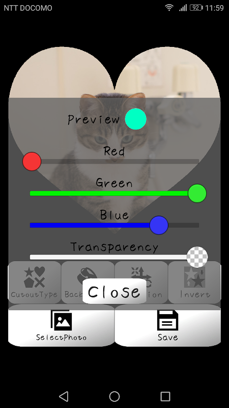型を選んで画像を切り抜くアプリ。簡単な動作で好きに画像を切り抜こう!切り抜いた画像は透過画像として保存します。