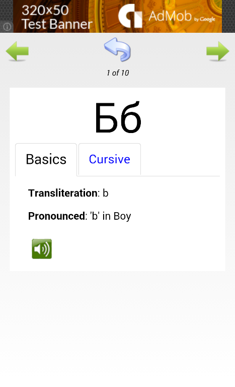 Cyrillic teaches you the history and usage of the Russian Alphabet letting you learn Cyrillic at your own pace using easy-to-navigate lessons, quizzes, and flashcards.