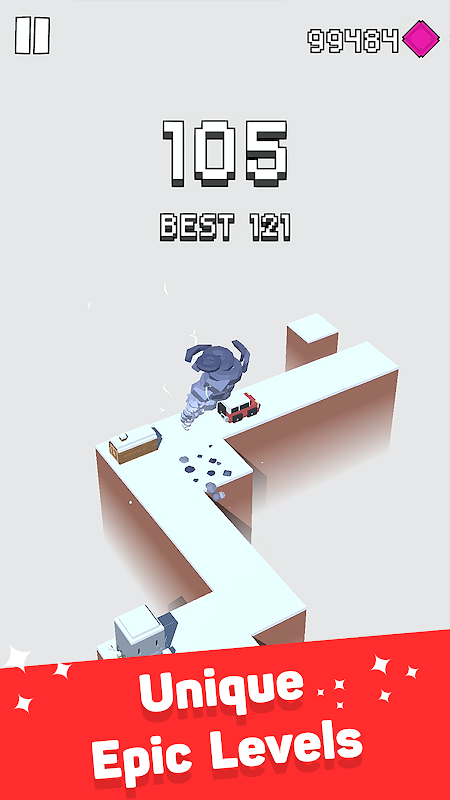 - Tap to turn the line, be careful with the zigzag, try not to fall off the ground and collect as many crystal as you can!