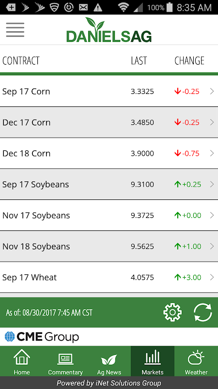 Get intraday prices from the Board of Trade, local and national weather outlooks, soil moisture maps, market-related news.