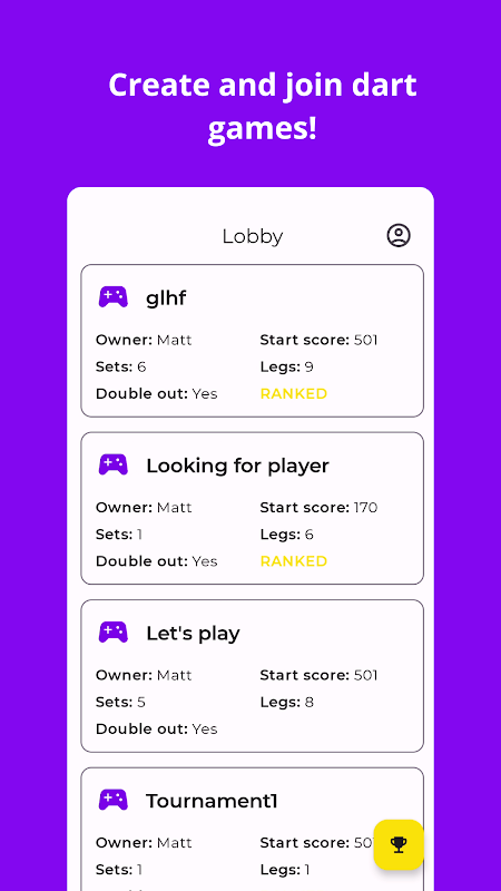 Dartify is jouw go-to-app voor spannende dartwedstrijden met vrienden, altijd en overal! Maak contact met je team, daag ze uit voor gerangschikte of niet-gerangschikte games en verbeter samen je vaardigheden.