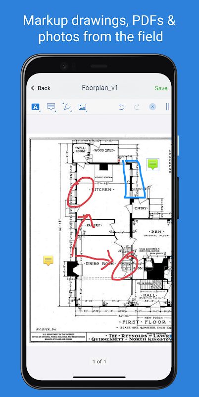 - Verzamelen en opnemen van foto's op de bouwplaats: maak foto's en video's rechtstreeks in de app die direct worden geüpload naar uw cloudgebaseerde bibliotheek en georganiseerd door eenvoudige tags voor eenvoudige traceerbaarheid