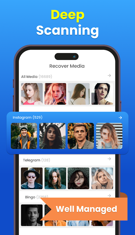 Gewoon een eenvoudige en gemakkelijke stappen met gids om het bestand te herstellen dat u per ongeluk hebt verwijderd. Dit bestandsherstel ondersteunt alle videoherstel, audioherstel en fotoherstel en back-up. In deze app voor gegevensherstel krijgt u dezelfde bestandskwaliteit en -kwantiteit als voorheen. Herstel verwijderde bestanden in deze app voor fotoherstel om uw kostbare en privégegevens weer op de telefoon op te slaan.