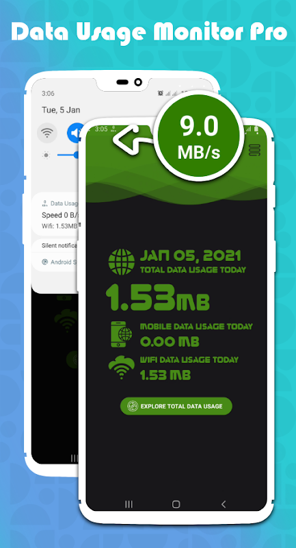 Data Usage Monitor Pro geeft uw internetsnelheid weer in de statusbalk en toont de hoeveelheid gebruikte data in het meldingsvenster. Hiermee kunt u de netwerkverbinding op elk moment tijdens het gebruik van uw apparaat in de gaten houden. Bovendien is het hier zeer mooi afgewerkt. Hier wordt het relevante datagebruik voor de dag weergegeven op de voorpagina en worden de volledige gegevens die door u worden gebruikt, gescheiden van dag tot dag . Werkt goed met zowel moderne als oudere apparaten en wordt geleverd met een verscheidenheid aan functies die bij u passen en u kunt alle functies hier gratis gebruiken.