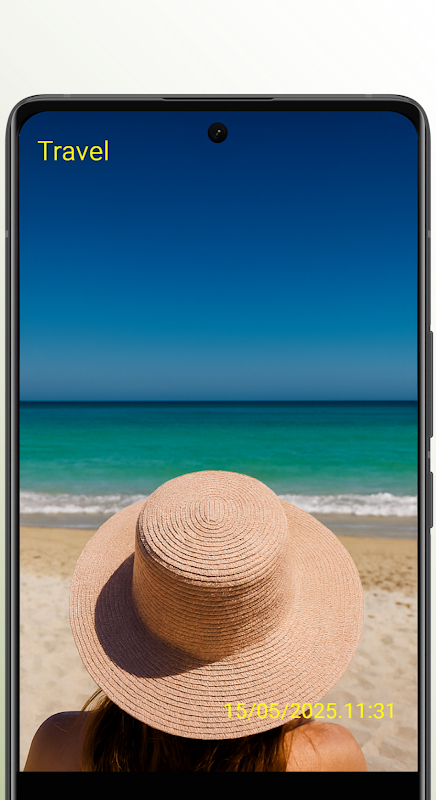 Vergeleken met de originele DateCamera introduceert deze versie aangepaste tekstinvoer, waardoor je meer flexibiliteit hebt om je foto's te voorzien van notities, labels of beschrijvingen.