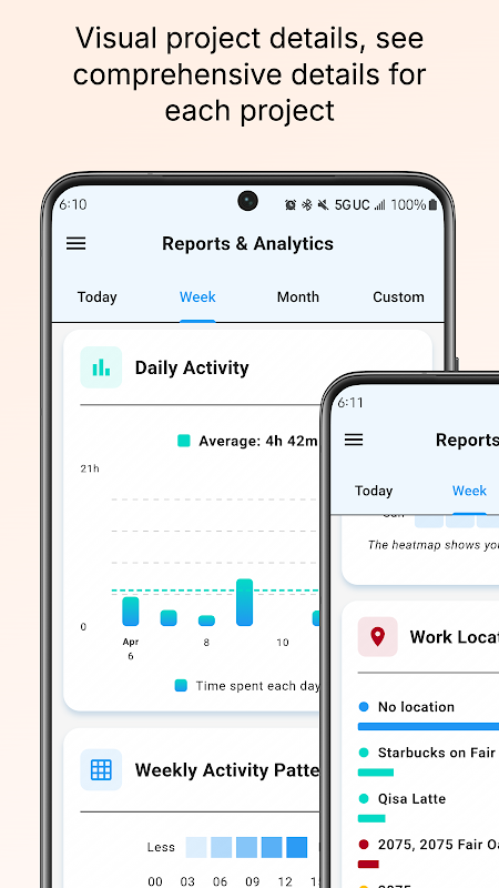 📊 KRACHTIGE ANALYSE EN RAPPORTEN • Visueel dashboard met productiviteitspatronen • Dagelijkse, wekelijkse en maandelijkse tijdverdelingsgrafieken • Projectvergelijkingsanalyses • Aanpasbaar datumbereik voor gerichte analyse • Exporteer gedetailleerde CSV-rapporten voor facturering en boekhouding • Importeer bestaande urenregistratiegegevens uit andere systemen • Op tags gebaseerde filtering voor gespecialiseerde rapporten