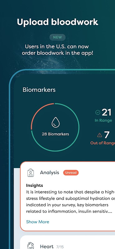 Uw 24/7 AI-gezondheidsconcierge is getraind op uw unieke gezondheidsprofiel en interpreteert laboratoriumresultaten, identificeert vervolgstappen en spreekt de taal van preventieve geneeskunde en gezondheidszorg. Het is alsof u een privé-arts of gezondheidstracker voor uw levensverlenging hebt – zonder de bijbehorende kosten van € 10.000. Synchroniseer uw Apple Health-gegevens of activiteitsgegevens van wearables zoals WHOOP en Oura Ring. Monitor eenvoudig vitale functies zoals bloeddruk, hartslag, bloedsuiker en hartaandoeningen. De AI-gezondheidsconcierge kan u ook aanbevelingen geven over supplementen en medicijnen, en over hoe u beter kunt slapen en stress kunt verminderen.