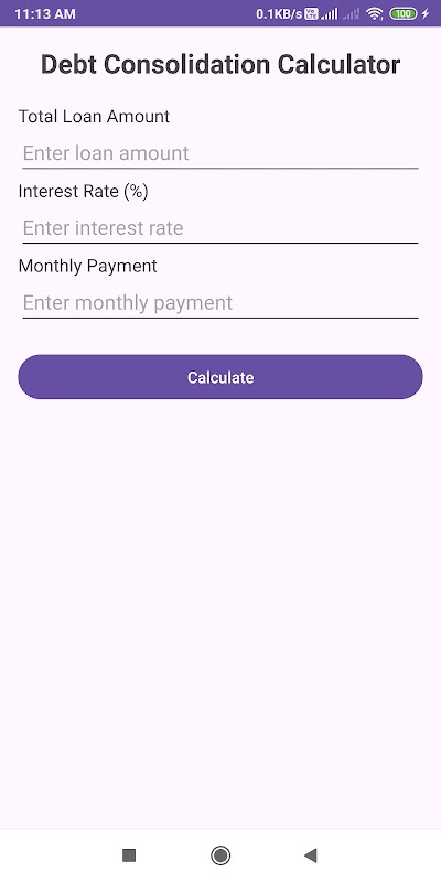 Disclaimer: Houd er rekening mee dat de app Schuldconsolidatiecalculator uitsluitend bedoeld is voor informatieve doeleinden en niet als financieel advies mag worden beschouwd. Raadpleeg altijd een gekwalificeerde financieel adviseur voordat u beslissingen neemt over leningen of schulden. Deze app wordt door geen enkele financiële instelling officieel erkend.