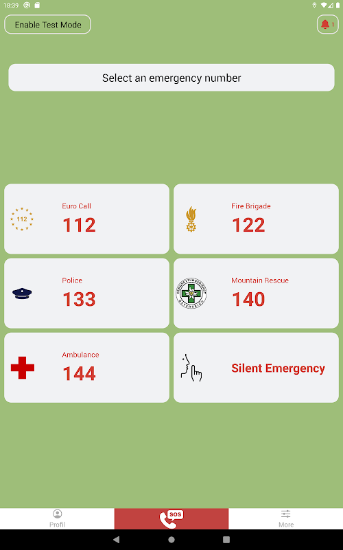 Er is ook een modus voor het trainen van noodoproepen in de DEC112-app. Zo kun je beter leren omgaan met de app.