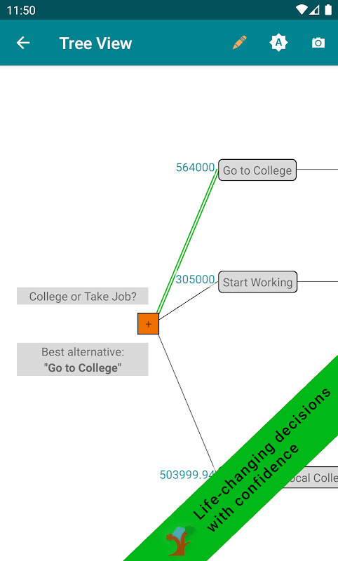 Onbeperkte beslissingen, volledige hulp, delen – Bewaar onbeperkte beslissingen. Krijg toegang tot een uitgebreide helpsectie voor meer informatie over besluitvorming en het gebruik van beslisbomen. Deel beslissingen naadloos via export/import en snapshots van afbeeldingen.