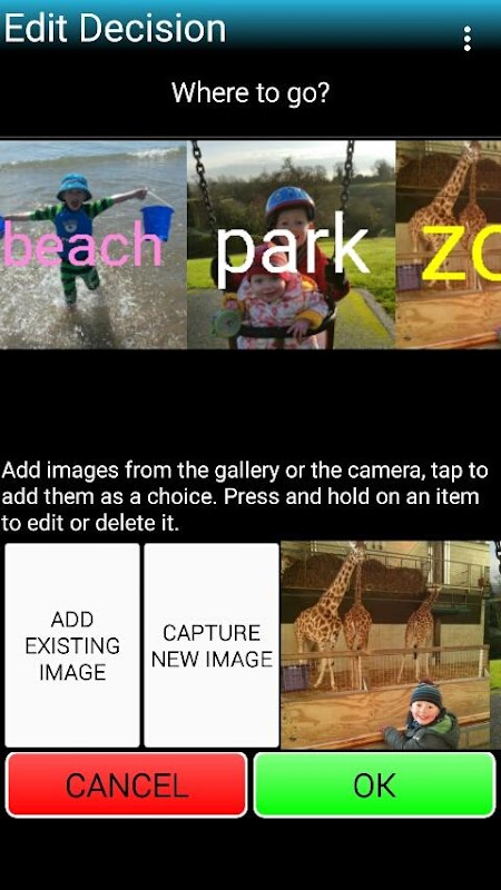 We hebben u begonnen met een aantal vooraf ingestelde beslissingen of u kunt tot 30 van uw eigen voor een persoonlijke touch. Bij gebruik van de beslissing wiel kunt u kiezen zijn optioneel geluidseffect uit te schakelen en je kunt zelfs kiezen om te zien Robert de robot maakt de beslissing voor u, dat is geweldig voor onderhoudend kleintjes is!