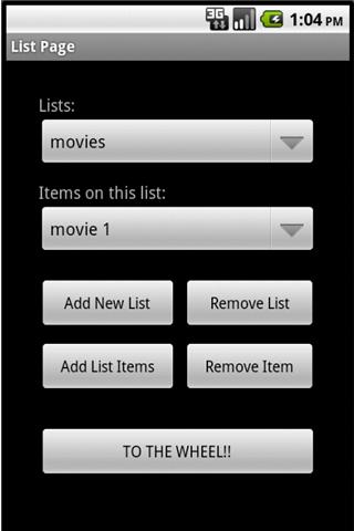 Note, another fun use of this application is as a fortune teller. To do this, create a list with a title such as "future husband/wife" or "future job", and put in some good items (and some bad ones), then give the wheel a spin and have fun.