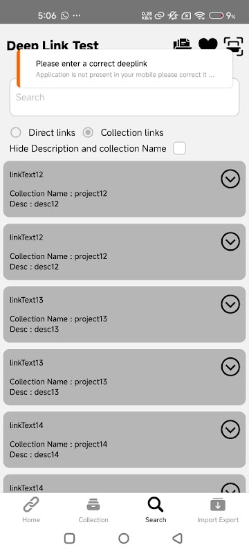 Open URL's in de browser: Open snel en moeiteloos elke deep link in uw favoriete browser om ervoor te zorgen dat deze naar behoren functioneert. Deze functie maakt naadloze verificatie en testen van deep links op verschillende platforms mogelijk.