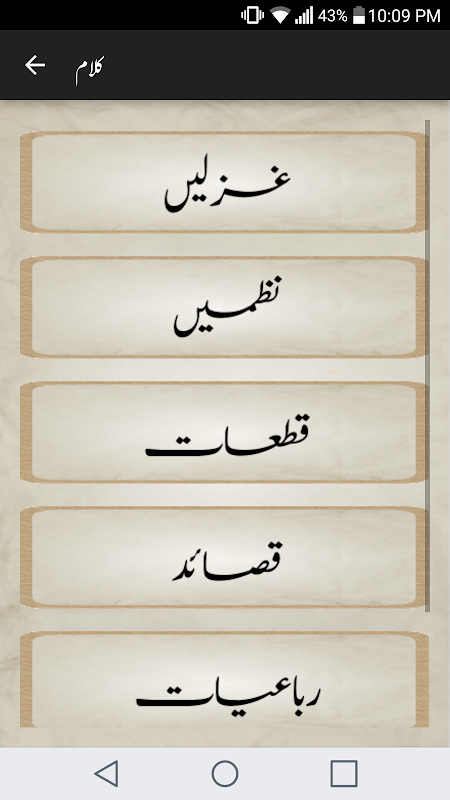 Compleet Urdu poëzie van beroemde Urdu dichter Mirza Asadullah Ghalib in Urdu tekst.
