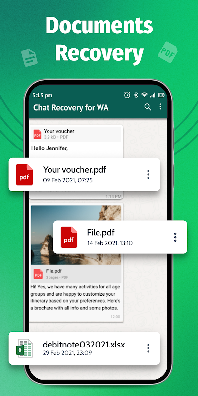 Chatten herstellen app helpt Jij in verwijderd bestand herstel naar krijgen rug kwijt bestanden. Herstellen geluid met WhatsAppen verwijderd berichten herstel app En ongedaan maken bestanden. Telefoon gegevens herstel kan monitor meldingen En herstellen verwijderd gegevens En tekst berichten met offline chatten app.