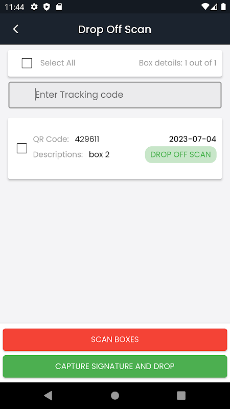 - Mogelijkheid om een drop-off-scan uit te voeren die de doos verifieert en u waarschuwt als de doos niet op die locatie mag worden afgeleverd.