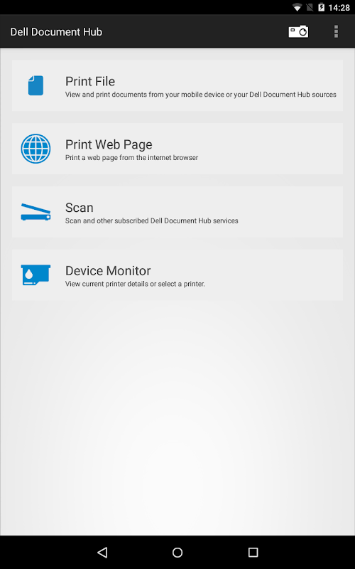 Dell Document Hub is a convenient cloud solution that enables you to simplify document collaboration. Designed primarily for Dell laser printers, this app allows you to scan to and print from a variety of common cloud storage services. Using this app, you can conveniently connect to these cloud services and enable your compatible Dell printer to perform mobile printing and scanning, and converting documents to editable and searchable files with free Optical Character Recognition (OCR). You can also view printer status and configure print and scan settings. New camera capture feature allows you to snap and print/store.