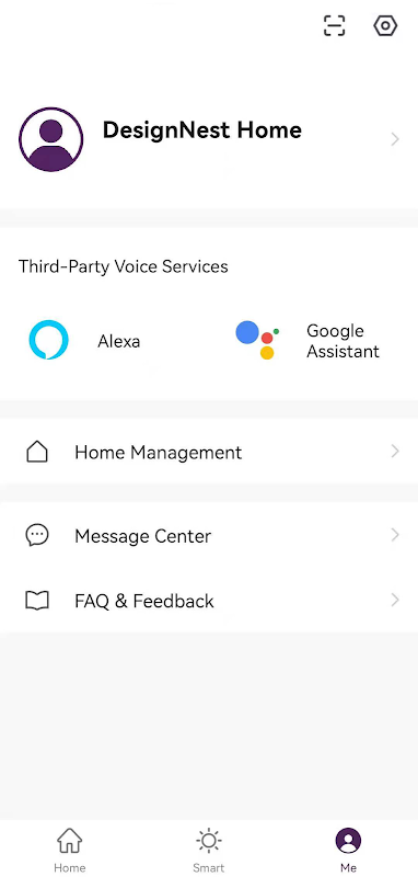 2. Set various scenarios, such as getting home, leaving home, getting up, resting, etc. Simple one-click control of all DesignNest SmartHome products.