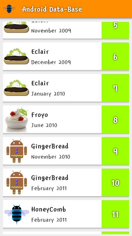 - Android-Collection (Icon, Name, Release date, API Level)