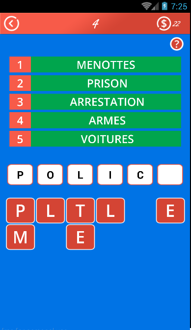 Chaque devinette qui se compose de plusieurs indices: synonymes, expressions populaires et association de mots.