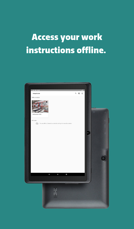 This SwipeGuide app delivers instructions offline to keep you connected to the knowledge you need, when you need it. Before using your instructions in an offline environment, simply connect to wifi and download the work instructions you need to get the job done.