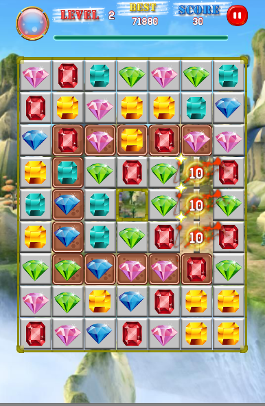 Swipe Diamond Dash and Splash them to reach the required score and get the stars