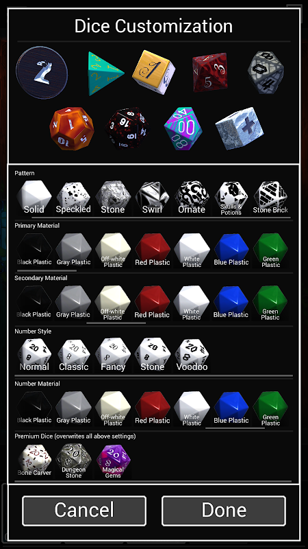 -Customize uw eigen polyhedraal dobbelstenen met een bijna eindeloze combinaties van materialen, cijfers en patronen, met meer op de weg.