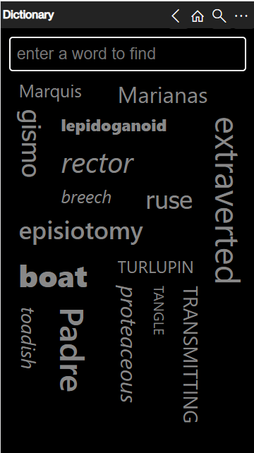 Dictionary is een gratis offline Engels woordenboek met meer dan 250.000 woorden en definities en precies 0 advertenties. De woordenboekdefinities worden lokaal opgeslagen en omdat het advertentievrij is, is er geen netwerkverbinding nodig. De startpagina bevat een willekeurig geselecteerde woordwolk die je nieuwsgierigheid prikkelt en je helpt je woordenschat te vergroten, terwijl je met het zoekvak gemakkelijk specifieke woorden kunt vinden.