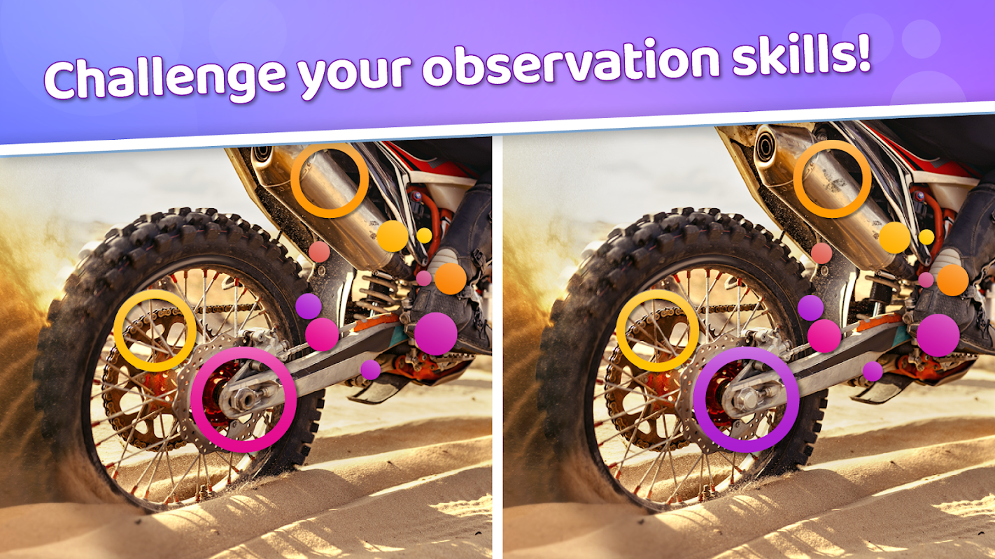 Begin met eenvoudige niveaus en werk je een weg naar meer uitdagende afbeeldingen met subtiele verschillen. Een perfecte manier om je hersenen te trainen en je focus te verscherpen!