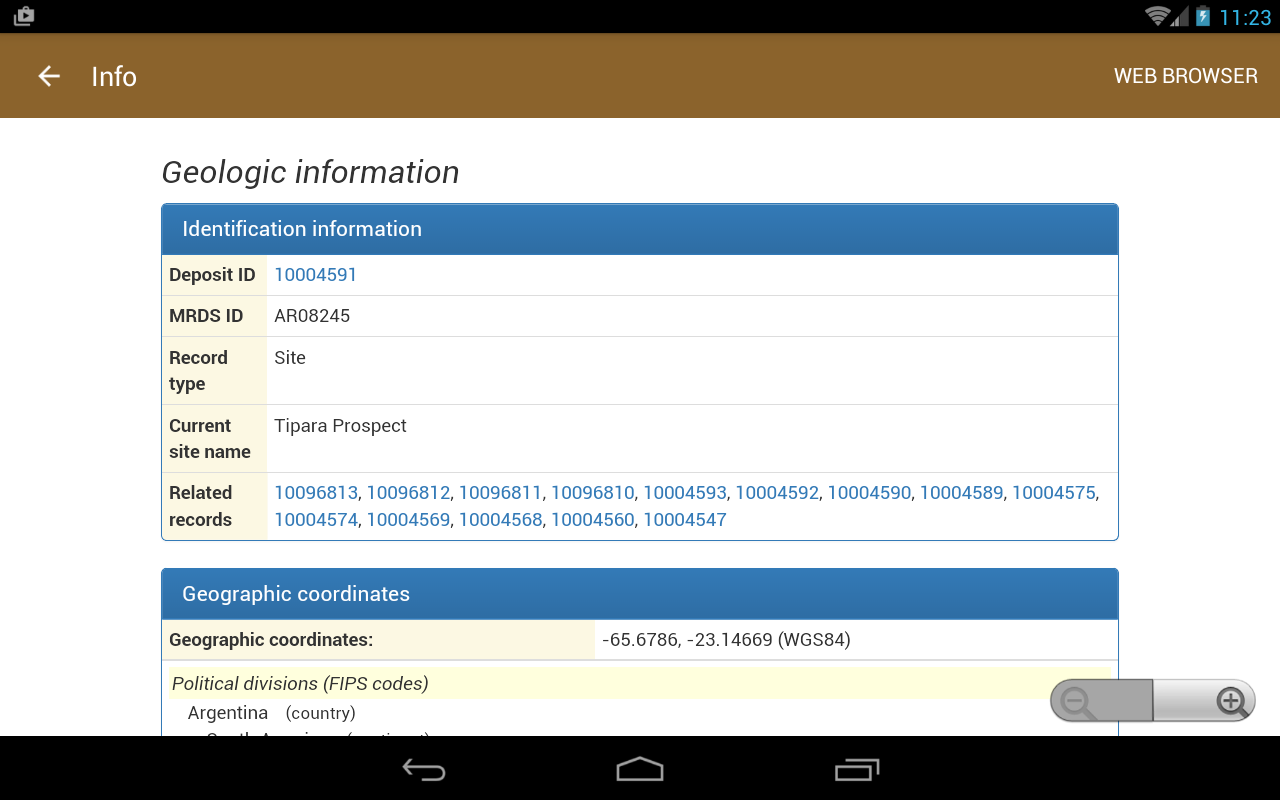 De app biedt informatie over talloze operationele installaties, historische mijnsites en andere locaties.