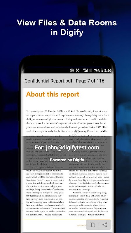 - Secret Mode: Files shared in Digify’s secret mode require this File Viewer app for access. With secret mode enabled, print, download and forwarding are automatically disabled; screenshots and Apple airplay or similar recording technologies are also blocked.