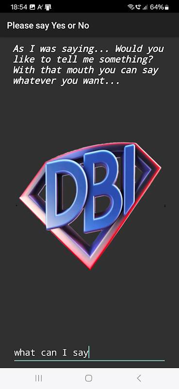 DBI v4 is een [geen contant geld] pre-release. Dit betekent [geen contante transacties]. Je hebt de mogelijkheid om de app te testen in afwachting van een toekomstige [contante] release. Typ een zin en druk op Enter. Je kunt (zelfs mondeling) dezelfde vragen stellen als je favoriete chatbot, maar de beste interactie is om je mening vrijuit te geven. Het systeem stelt een tegenvraag telkens wanneer het je gedachte of een specifiek verzoek niet begrijpt. Beantwoord dan simpelweg met ja of nee, zodat je continu kunt leren en je digitale basisinkomen kunt genereren.
