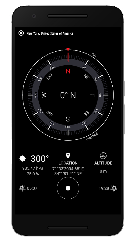 Digitaal kompas 2018 is gemakkelijk te gebruiken; gebruik het gewoon als een echt kompas. Het deel van Compass dat beweegt en altijd naar het noorden wijst, wordt de kaart of Rosetta genoemd. Er is een beweegbare ring van het kompas, genaamd de ring. Een rode dubbele lijn over de bovenkant van het kompas wordt de koerslijn genoemd.