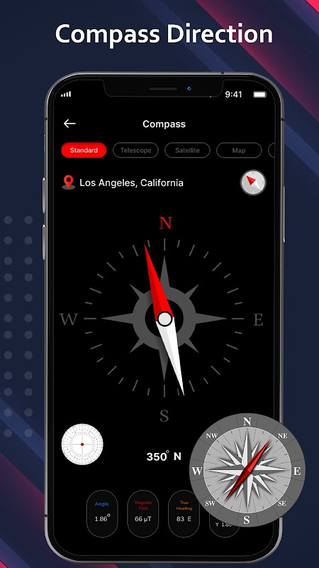 Digitaal kompas zijn handige elektronische apparaten die sensoren gebruiken om het magnetische veld te bepalen en die metingen vervolgens numeriek weergeven met behulp van de gratis kompas-app. Direction Compass sensor is een magnetometer 🧲 die het magnetische veld van de aarde van u kan meten.
