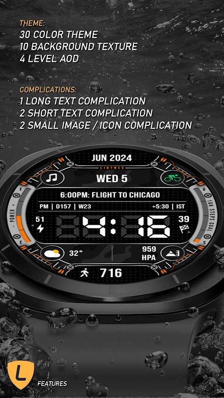 ✦ Ontdek 30 kleurthema-opties om uw wijzerplaat te personaliseren volgens uw voorkeuren.