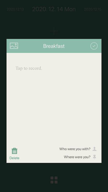Je kunt bijhouden met wie je hebt gegeten en waar je hebt gegeten, en je kunt ook eenvoudige dagboekaantekeningen maken.