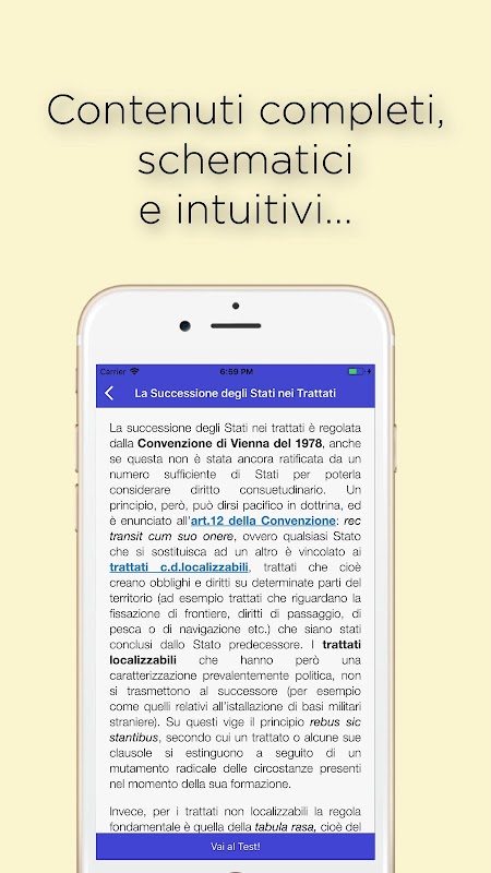L'unica app che ti accompagna con chiarezza nello studio del Diritto Internazionale pubblico e privato, attraverso 22 capitoli di teoria e 250 DOMANDE distribuite in TEST per argomento e livello di difficoltà!