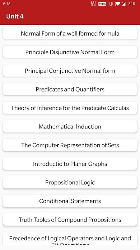 De app is een compleet gratis handboek van discrete wiskunde dat alle belangrijke onderwerpen behandelt met gedetailleerde notities, diagrammen, vergelijkingen, formules en cursusmateriaal.