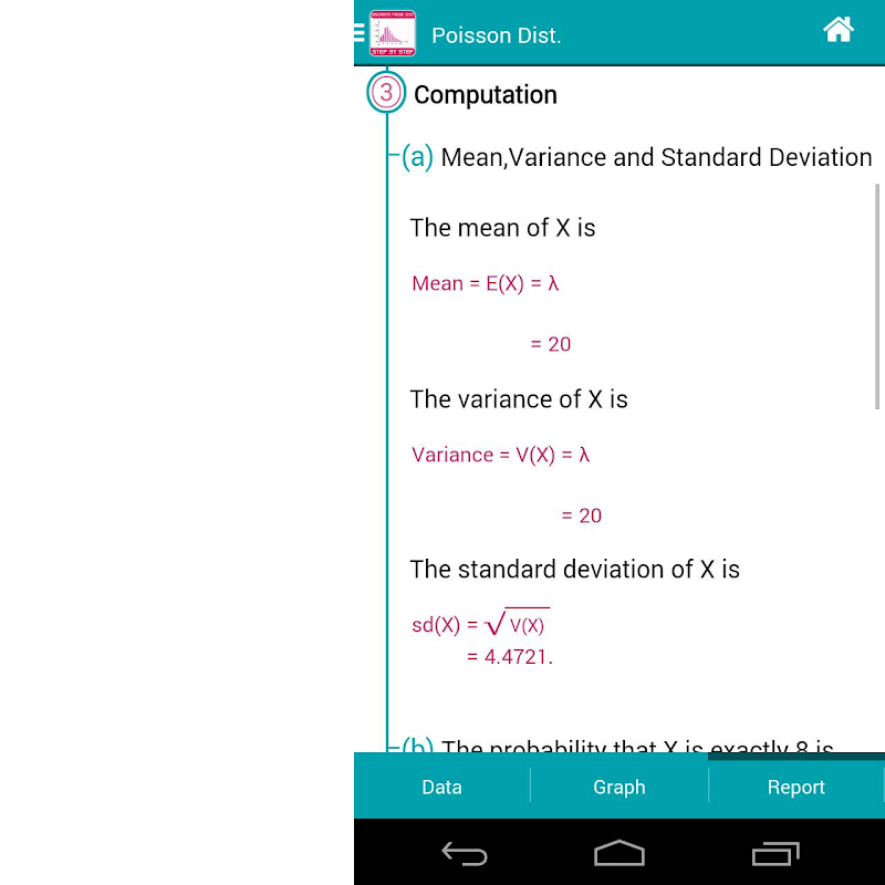 It is developed and designed by qualified Statistics Expert. It is designed in such a way that user can learn theory step by step, and use the theoretical concepts to solve numerical problems using calculation and step by step dynamic reporting.