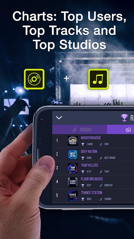 - Muziek creator studio met verschillende soorten geluidseffecten en beats;