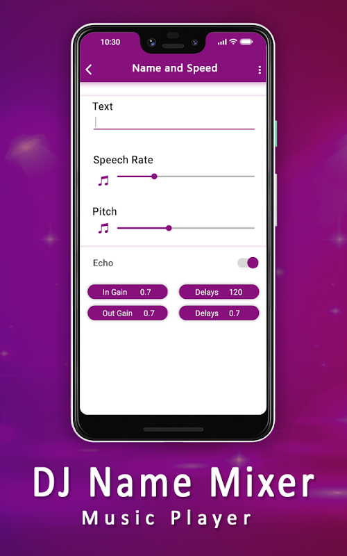There is a special function given in DJ Name Mixer Plus is that, in text and in recorded sound you can also add effects if you want. You can also adjust the Echo voice in Music Mixer App, Pitch and Sound. After mixing your music you can set them as your ringtone and as notification tone also.