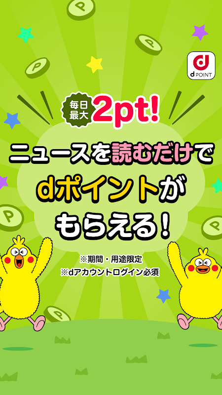 Docomo's gratis nieuws-app waarmee u d-punten kunt verdienen door alleen maar het nieuws te lezen. Vol met functies, waaronder pushmeldingen voor het laatste nieuws en lokale nieuwsinstellingen. Ook bezorgen wij elke dag leuke kortingsbonnen.