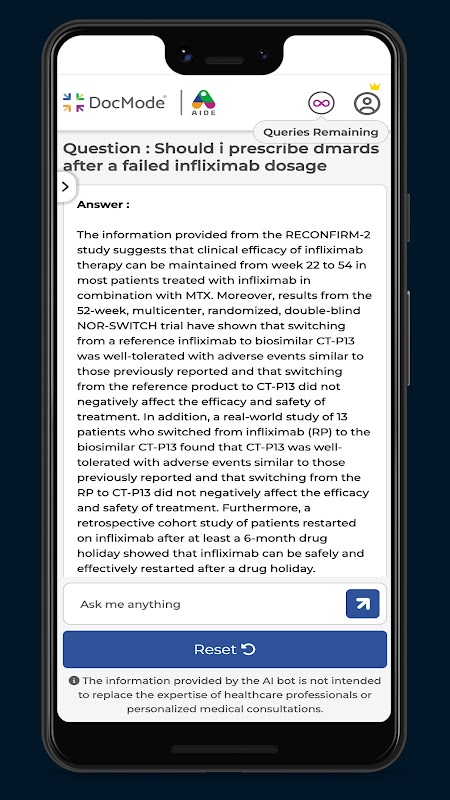 Het fungeert als een virtuele kennisassistent die is afgestemd op medische professionals en biedt antwoorden door toegang te krijgen tot een uitgebreide opslagplaats van meer dan 16 miljoen geïndexeerde wetenschappelijke artikelen, waaronder medische gegevens, klinisch advies, onderzoekspapers en casestudy's. AIDE biedt op bewijs gebaseerde inzichten, waardoor nauwkeurige en geïnformeerde medische oordelen mogelijk zijn.