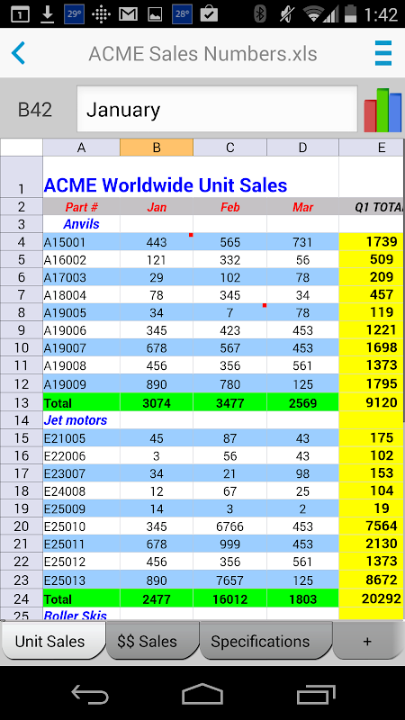•Sheet To Go offers powerful data computation with support for 111 functions, cell, number & sheet formatting, row & column preferences, auto-fit options, freeze panes, sort, cut, copy, paste, undo, redo, charting, etc.