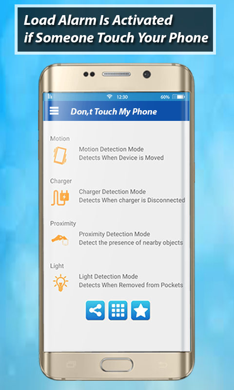 Raak mijn telefoon en Anti Theft Mobile-alarmverantwoordelijkheid niet aan Telefoon Alarm Bescherm uw telefoon tegen opzakken of diefstal ogen met telefoonalarm! Inbraakalarm de enige alarmbeveiligingsapp die uw apparaat kan redden van een ophaalautomaat & diefstalalarm.