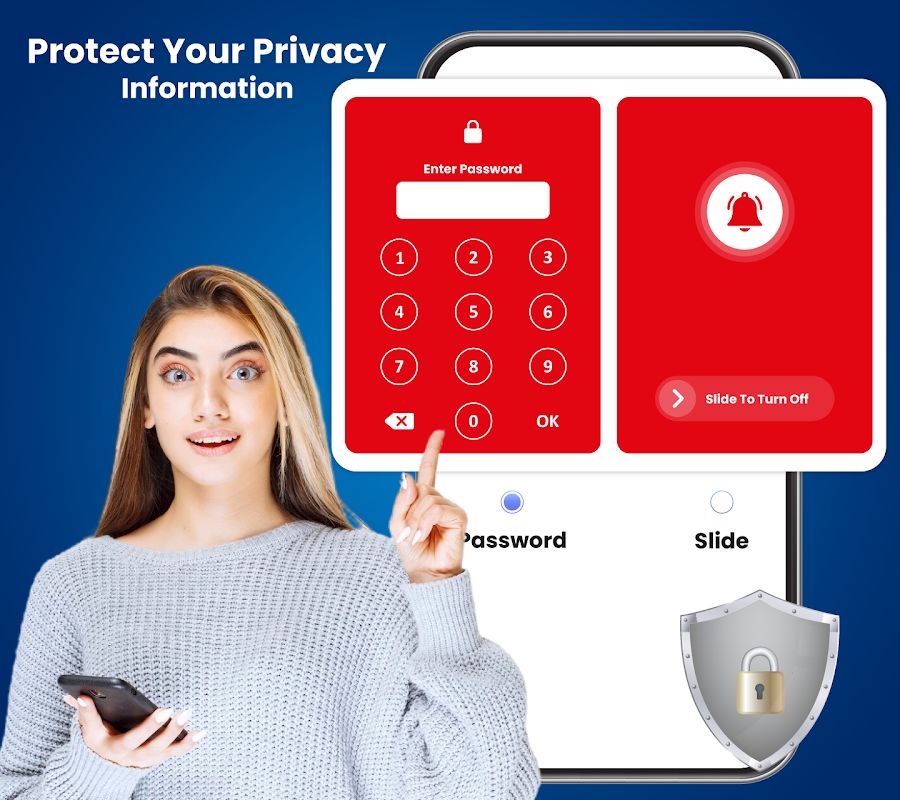 Het antidiefstalalarm in deze app helpt u uw apparaat te beveiligen en geeft een melding dat iemand uw telefoon heeft aangeraakt. Met deze geluidsapp voor telefoonbescherming kunt u uw telefoon ook beschermen als u zich in een drukke omgeving bevindt. Het antidiefstalgeluid wordt afgespeeld als iemand uw telefoon probeert af te pakken.