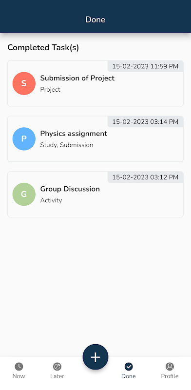 De aanwezigheid van verschillende tabbladen zoals nu, later en klaar helpt om taken gecategoriseerd te houden.