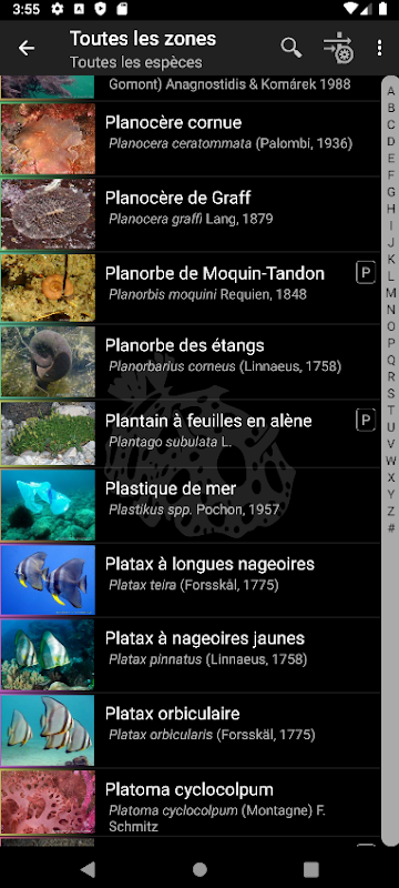 DORIS Android is een geïllustreerde gids voor de onderwatersoorten van het Franse vasteland en de overzeese gebieden die "bijna" overal mee naartoe kan worden genomen.